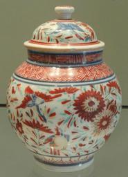 Keywords: Small Jar with Bird and Flower Design, c. 1670-1680, Arita, hard-paste porcelain with overglaze enamels - Gardiner Museum, Toronto - DSC00439.JPG Exhibit in the Gardiner Museum Toronto Ontario Canada This artwork is in the public domain because the artist died more than 70 years ago Photography was permitted in the museum without restriction Daderot 2012-10-16 14 08 06 Daderot cc0 cc0 Porcelain jars baluster lidded Baluster-shaped jars porcelain lidded Japanese pottery in the Gardiner Museum Animal porcelain patterns |