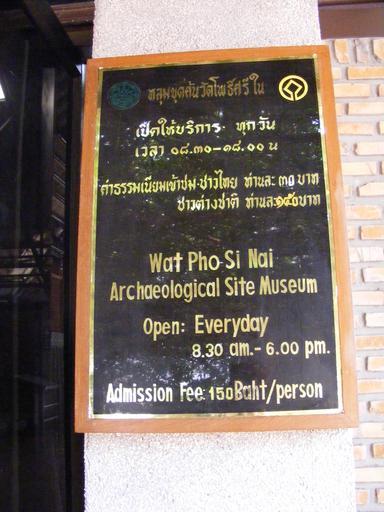 | Keywords: Small sign at Wat Pho Si Nai.JPG Sign at Wat Pho Si Nai Ban Chiang Archaeological site Thailand - UNESCO World Heritage Site The pricing is not correct it shows the entrance fee for foreigners Thai nationals pay 30 Baht though as of 2009-03-12 own 2009-03-12 User Mattes Ban Chiang Archaeological Site Opening hours in Thailand pricing Taken with Fujifilm FinePix S5700 User Mattes/Contributions/Topics/Thailand User Mattes/Contributions/Topics/banners coat of arms flags logos seals and signs Work by Mattes 2009 World Heritage Site signs |