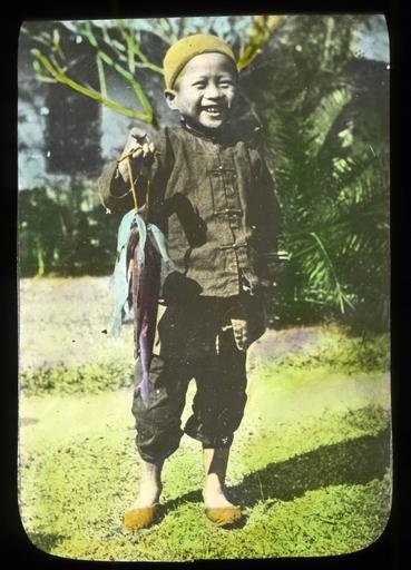 | Keywords: Smiling child holding fish, China, ca. 1918-1938 (MFB-LS0232).jpg en <br> Smiling child holding fish China ca 1918-1938 Colorized lantern slide of a smiling child standing outdoors dressed in traditional clothing He holds a couple of fish on a string in his right hand Photographer Unknown Subject keyword children; portraits Filename MFB-LS0232 Coverage date 1918/1938 Subject unesco children Part of collection International Mission Photography Archive ca 1860-ca 1960 Type images Part of subcollection Photographs of the Catholic Foreign Mission Society of America Maryknoll New York 1912-1945 Part of repository Maryknoll Mission Archives Repository name Maryknoll Mission Archives Archival file impa_Volume32/MFB-LS0232 tiff Repository address Maryknoll Mission Archives PO Box 305 Maryknoll N Y 10545-0305 Geographic subject country China Geographic subject continent Asia Rights http //www maryknollsociety org/index php/articles/2-articles/593 Repository email archives maryknoll org Date created 1918/1938 Publisher of the digital version University of Southern California Libraries Format aat lantern slides Legacy record ID impa-m60376 Access conditions http //www maryknollsociety org/index php/articles/2-articles/593 File MFB/LanternSlides/LS0232 1918/1938 author http //digitallibrary usc edu/cdm/ref/collection/p15799coll123/id/11272 PD-old-70-1923 Magic lantern images Images from USC Digital Library uploaded by Fæ International Mission Photography Archive ca 1860-ca 1960 children |