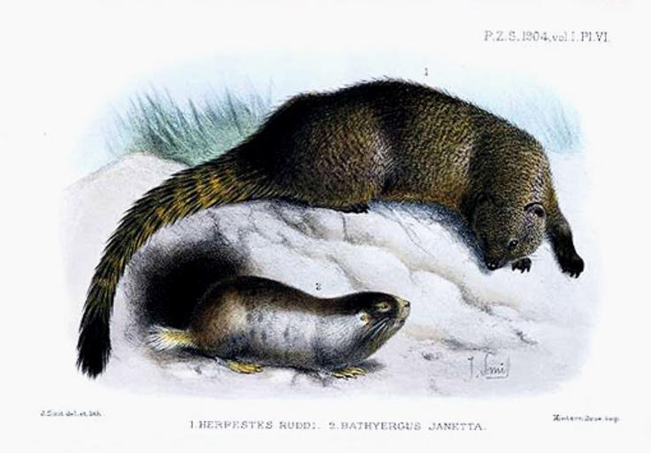 | Keywords: Smit.herpestes ruddiand Bathyergus janetta.jpg Herpestes ruddi and Bathyergus janetta source http //www classicnatureprints com/pr Smit 20Mammals/smith Herpestes ruddi html artist Joseph Smit PD-old Unidentified Herpestes Bathyergus janetta PZSL 1904 |