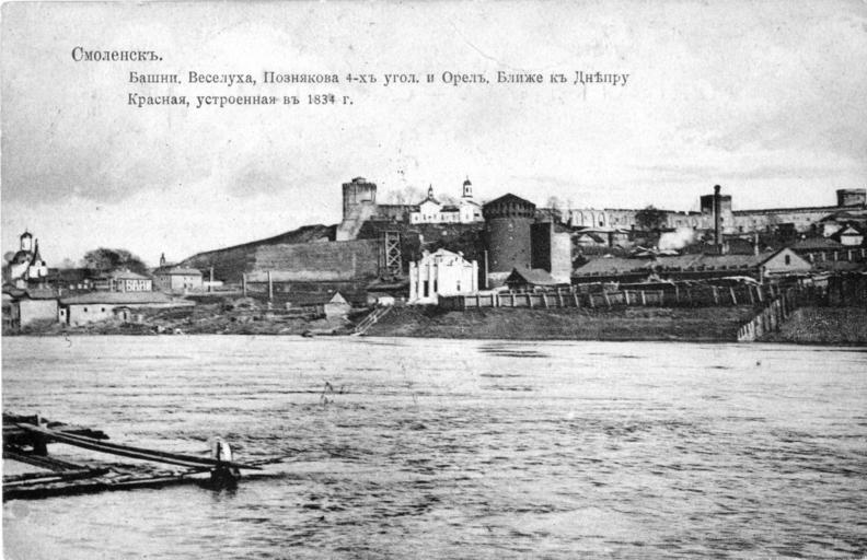 Keywords: Smolensk fortress wall 10.jpg en View of part of the Smolensk fortress wall with towers Kopytenskoy Veseluhoy Pozdnyakova the Eagle from the opposite bank of the Dnieper ru Вид на часть Смоленской к епостной стены с башнями Копытенской Веселухой Поздняковой О ёл с д угого бе ега Днеп а О игинальная отк ытка е установлены before 1917 года PD-RusEmpire 20th-century postcards of Russia Postcards of Smolensk Kostyrevskaya Tower Dnieper River in Smolensk Veselukha Tower Pozdnyakova Tower Eagle Tower |
