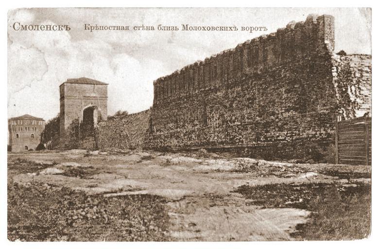| Keywords: Smolensk fortress wall 14.jpg en A fragment of the Smolensk fortress wall near the Molohovskie gate ru Ф агмент Смоленской к епостной стены близ олоховских во от О игинальная отк ытка е установлены before 1917 года PD-RusEmpire 20th-century postcards of Russia Postcards of Smolensk Donec Tower |