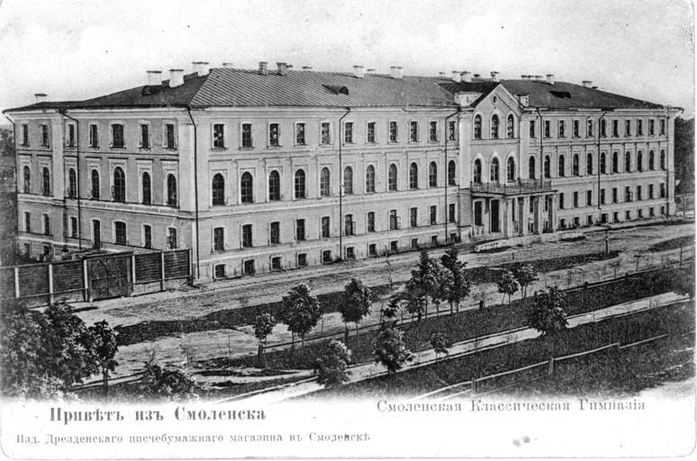 | Keywords: Smolensk gymnasium 3.jpg en The building of the Smolensk grammar school now - high school named Przewalski ru Здание смоленской классической гимназии ныне - гимназия имени П жевальского О игинальная отк ытка Изд Д езденского писчебумажного магазина в Смоленске before 1917 года PD-RusEmpire 20th-century postcards of Russia Postcards of Smolensk |