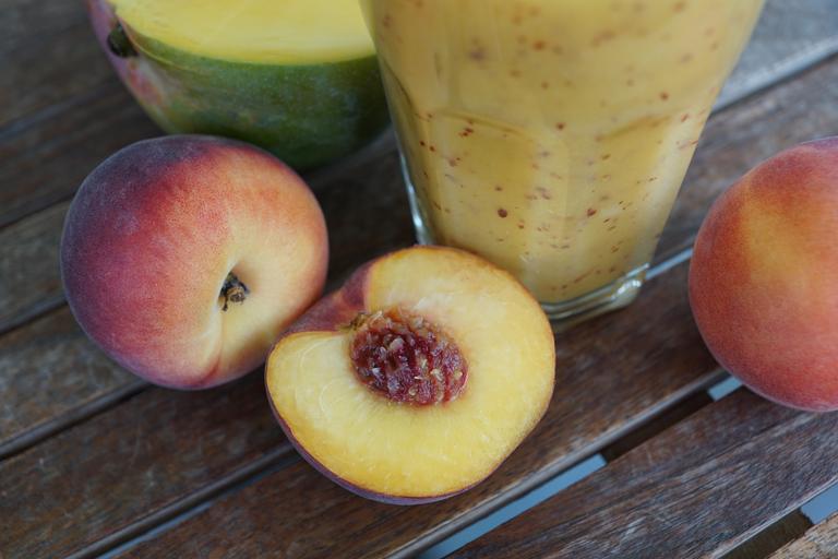 Keywords: smothie fruit drink glass healthy peach mango juice nutrition vitamins yellow bless you pressed thirst vitamin c food close frisch