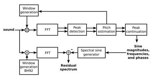 | Keywords: SMS analysis (Bonada et al. 2001, Fig.1).svg Spectral modeling synthesis SMS analysis own based on Fig 1 Block diagram of SMS analysys in Xavier Serra Serra X ; Kenmochi H Spectral Approach to the Modeling of the Singing Voice http //citeseerx ist psu edu/viewdoc/download doi 10 1 1 75 2357 rep rep1 type pdf In Proc of the 111th AES Convention 2001 CiteSeer CiteSeerX CiteSeerX http //citeseerx ist psu edu/viewdoc/summary doi 10 1 1 75 2357 10 1 1 75 2357 Clusternote 2015-02-04 10 38 07 UTC Spectral Modeling Synthesis Cc-zero |