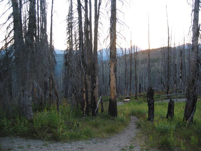 | Keywords: glacier national park glaciernationalpark hiking backcountry fifty mountain fiftymountain trail mountains glaciers rocks alpine scenery weather outdoor landscape forest A forest of burned snags is a reminder that the fires of 2003 cleared the way for the flowers below to flourish in sunshine. Photo: David Restivo, NPS A forest of burned snags is a reminder that the fires of 2003 cleared the way for the flowers below to flourish in sunshine. Photo: David Restivo, NPS | ||||