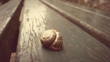 Keywords: snail bank animal bench rest nature human wanderer hike happy