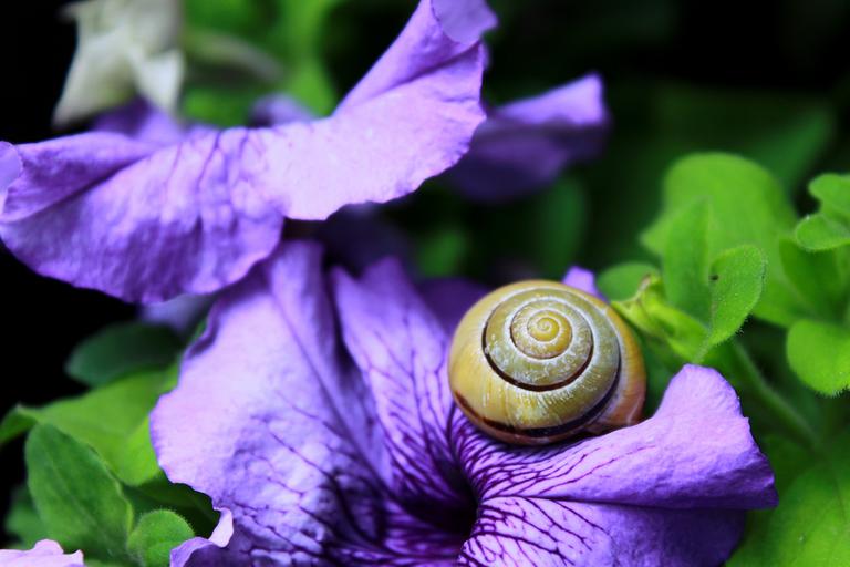 Keywords: snail shell mollusk close slowly snail shell reptile crawl animal yellow garden leaf flower green summer purple blossom bloom nature