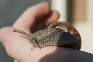 Keywords: snail shell mollusk nature hand spring crawl garden slowly animal macro summer