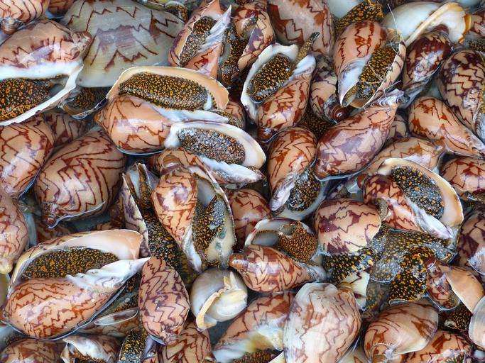 Keywords: snail shell seafood fischer eat food meal market kitchen fishing vietnam asia head frisch market stall fish market sea animals sea