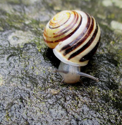 Keywords: snail shell spiral mollusk stone rainy weather close