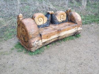 Keywords: SnailBenchPrioryCountryPark.JPG en A bench carved from a single log with the back and ends in the form of snails in Priory Country Park Bedford Bedfordshire own Simon Speed 2010-01-18 Sculpture is on permanent display in a public place in the UK 52 7 35 N 0 26 5 19 W region GB_heading NNE Priory Country Park Snails in art Carved trees in England Tree trunk seats Photos by Simon Speed |