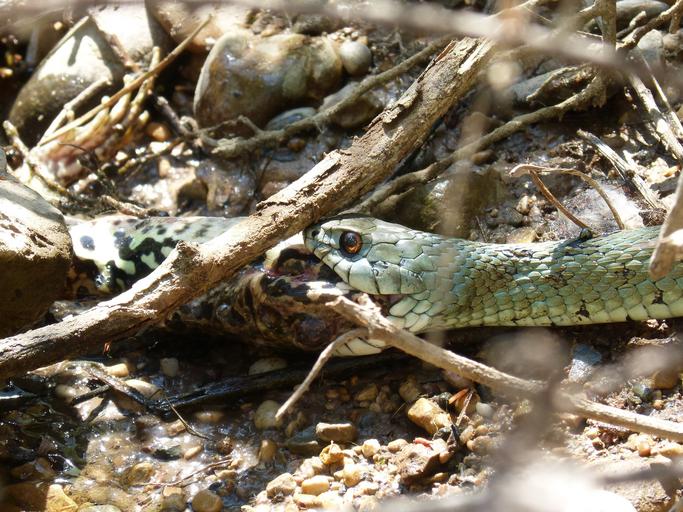 Keywords: snake eating a frog natrix natrix snake necklace snake snake river predator