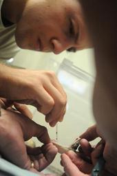 Keywords: Snake Surgery DVIDS279942.jpg en Army Sgt Ardicio Galvao animal care non-commissioned officer in-charge of the Guantanamo Bay Veterinary Treatment Facility inserts an anesthesia line in a Cuban Boa snake before inserting a tracking chip April 13 The clinic treats the pets of service members and Department of Defense employees who assigned to Joint Task Force Guantanamo and U S Naval Station Guantanamo Bay 2010-04-13 Petty Officer 3rd Class Joshua Nistas https //www dvidshub net/image/279942 100413-N-+++++-050 2010-05-17 16 25 GUANTANAMO BAY CU PD-USGov-Military-Navy Naval Station Guantanamo Bay Joint Task Force Guantanamo Images from DoD uploaded by Fæ |
