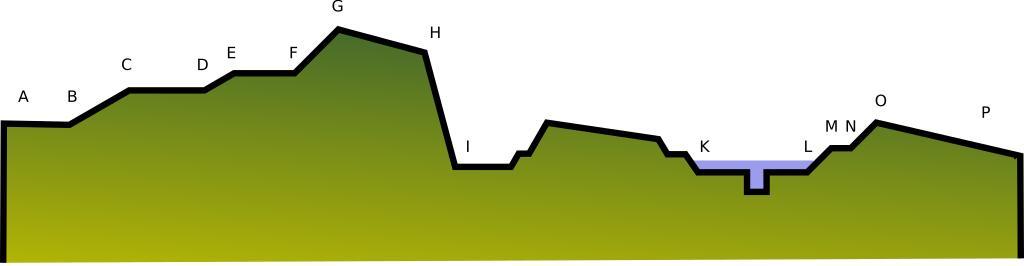 | Keywords: Snitt festning nederlandsk system.svg A cut through a fortress built after the Dutch system Own Harald Hansen wikitable +Norwegian Nøkkel til tegningen over - AB Vollgaten HI Ytre vollskråning - BC Vollgatens indre skråning IK Eskarpemur - CD Vollgangen KL Vollgravbunnen - EF Bankett for kanoner LM Kontraeskarpemur - FG Brystvernet MN Dekket vei - GH Brystvernskrone OP Glasi Fortifications | ||||