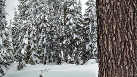 Keywords: snow forest trees pine winter season nature cold white outdoor snowy crater lake national park