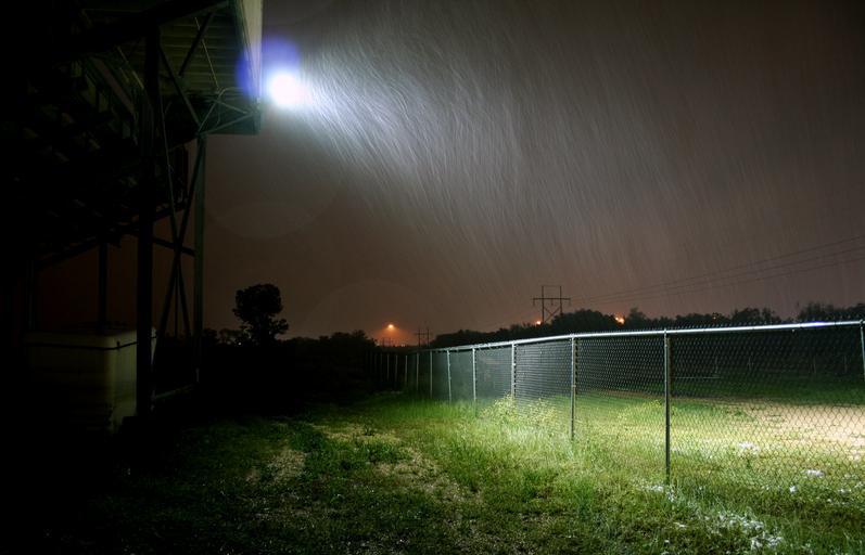 Keywords: snow night waco fog light easter spring winter fence Snow falling outside a football stadium in Waco, Texas. In April Snow falling outside a football stadium in Waco, Texas. In April