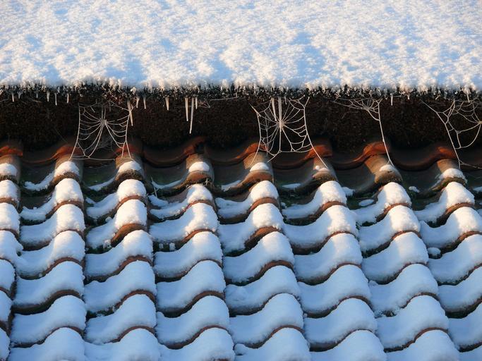 Keywords: snow icicles web with ice roof tiles winter white