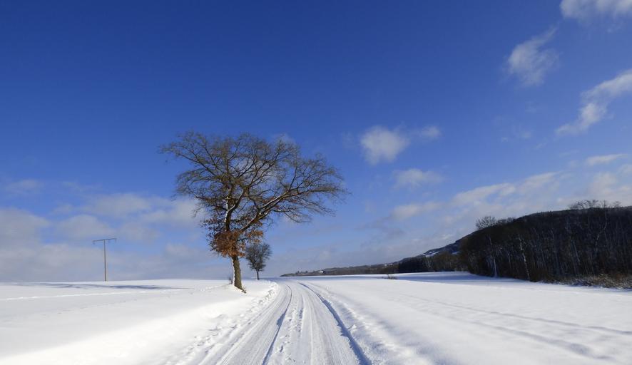 Keywords: snow landscape winter nature winter landscape trees blue sky luxembourg