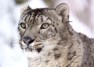 Keywords: snow leopard portrait looking stare face head feline big cat animal wildlife predator spots fur