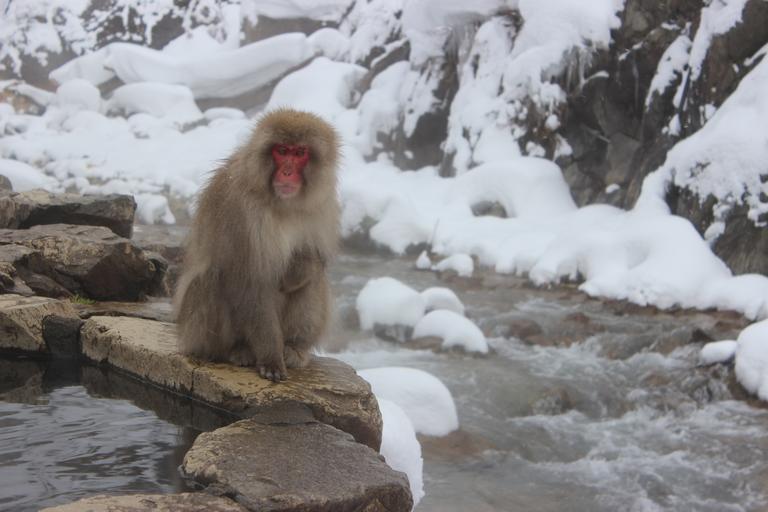 Keywords: snow monkeys macaque japanese jigokudani primate snow japan wildlife monkey onsen thermal bathing spa mammal animal outdoor winter hot bath cute nature spring water wild male alpha