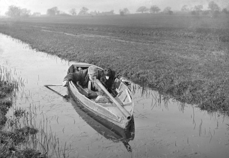 Keywords: Snowden Slights with dog in punt YORYM-S23.jpg Slights wearing a striped jacket and a cap lying in his duck-punt; to the right beside him is a retriever The punt is on a narrow straight stretch of water perhaps a canal depicted people Snowden Slights depicted place 1900-1912 glass plate negative 125mm long edge x 100mm short edge institution Yorkshire Museum object history exhibition history credit line accession number YORYM S23 York Museums Trust image PD-old-70-1923 PD-US Images from The Sydney Harold Smith Collection Waterfowl hunting Uploaded with UploadWizard Punts Snowden Slights |