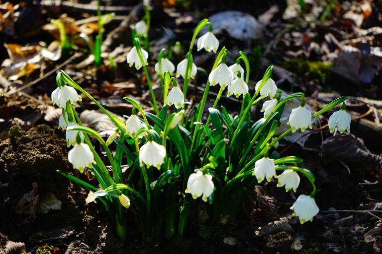 Keywords: snowflake flower blossom bloom white forest forest flower spring flower spring fruehlingsknotenblume bloom spring knotenblume maerzgloeckchen beautiful idyllic great snowdrops leucojum vernum amaryllidaceae leucojum plant zwiebelpflanze stalk bell
