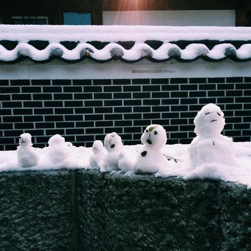 Keywords: snowman snow hanok roof tile byeokdoldam