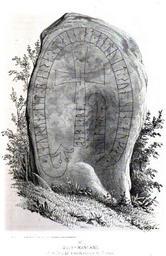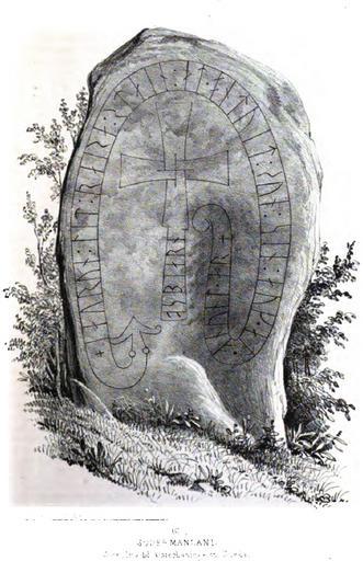 Keywords: Sö 266, Sanda.jpg The runestone Sö 266 The inscription reads + iaurun lit raisa stain at ontuit sun sin auk at onunt ar + osbiarn In English Jórunnr had the stone raised in memory of Andvéttr his son and in memory of Ônundr's Ásbjôrn Dybeck Richard 1855 Svenska run-urkunder Första Samlingen Stockholm Joh Beckmann 1855 Richard Dybeck Author died more than 70 years ago - public domain PD-old DEFAULTSORT Sö266 Runestones Södermanland Runestones of Haninge Municipality Österhaninge socken |
