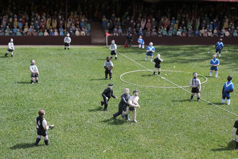 Keywords: soccer game football sport team field ball football game competition grass green fun summer playing football team championship soccer team small miniature crowd fans cup kicking outdoors mini