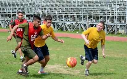 Keywords: Soccer match 140630-N-YU572-097.jpg en U S Navy Sailors assigned to the Arleigh Burke-class guided-missile destroyer USS John S McCain DDG 56 and Philippine marines compete in a soccer match during Cooperation Afloat Readiness and Training CARAT Philippines 2014 In its 20th year CARAT is an annual bilateral exercise series with the U S Navy U S Marine Corps and the armed forces of nine partner nations U S Navy photo by Mass Communication Specialist 1st Class Jay C Pugh/Released 2014-06-30 Petty Officer 1st Class Jay Pugh https //www dvidshub net/image/1430780 140630-N-YU572-097 2014-07-01 18 53 SUBIC BAY PH PD-USGov-Military-Navy USS John S McCain DDG-56 Cooperation Afloat Readiness and Training 2014 Images from DoD uploaded by Fæ |