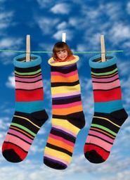 Keywords: socks colorful stockings clothes line girl child hide fun good mood happy clothespins