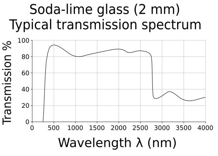 View Original: | Soda-lime glass, typical transmission spectrum (2 mm thickness).svg (700x500) | |||