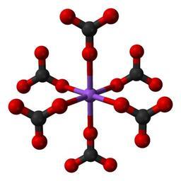 Keywords: Sodium-carbonate-xtal-Na-coordination-3D-balls.png Ball-and-stick model of the coordination of sodium in the crystal structure of the gamma polymorph of sodium carbonate γ-Na<sub>2</sub>CO<sub>3</sub> X-ray crystallographic data from http //dx doi org/10 1107/S0108768103009017 Acta Cryst 2003 B59 337-352 Own 2009-03-06 Ben Mills Benjah-bmm27 Images by Ben Mills Sodium carbonate |