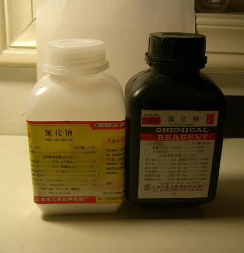 Keywords: Sodium halides.jpg Sodium fluoride and sodium bromide note the colour difference of their packages Own 2009-08-23 Choij <span class signature-talk >talk</span> Sodium halides