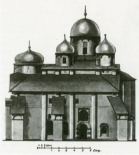 | Keywords: Sofia of Novgorod, 1831, prior to restoration.jpg  Architectural surveys of St Sophia cathedral in Novgorod 1831 prior to restoration of 1830s А хитекту ная съёмка собо а св Софии 1831 пе ед  естав ацией 1830-х годов Памятники а хитекту ы в до еволюционной России  Те  а 2002 ISBN 5-275-00664-0 1831 Signed engineer corporal Gorbunov Инжене -кап ал Го бунов Image Sofia of Novgorod 1830 prior to restoration jpg - different facade taken one year earlier Historical images of Saint Sophia Cathedral in Novgorod Saint Sophia Cathedral in Novgorod exterior PD-old-100  |