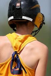 Keywords: softball player female helmet uniform ribbon game competition teen athlete teenager back tied sport young athletic fitness healthy girl person outdoor youth