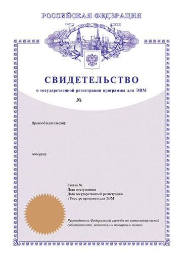 | Keywords: Software Registration Certificate Form(Russia).jpg ru Фо ма свидетельства о госуда ственной егист ации п ог аммы для ЭВ Россия 2009-02-13 18 33 38 http //www rupto ru/docs/regulations/Reg_progr_EVM/pril_6 jpg Феде альная служба по интеллектуальной собственности other versions Custom license marker 2016 07 09 PD-RU-exempt Insignia Software patents Federal Service for Intellectual Property Rospatent | ||||
