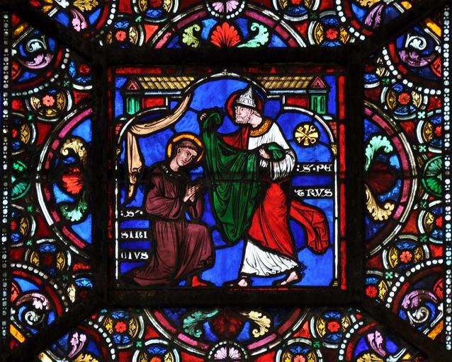 | Keywords: Soissons Cathedrale Vitraux 01 04 2012 03.jpg fr Cathédrale de Soissons détail d'une verrière du choeur l'histoire de Saint Sixte Saint Pierre et Saint Sinice 13ème-14ème siècle Detail of a stained glass window in the Cathédrale de Soissons the history of Saint Sixte Saint Peter and Saint Sinice Sinicius 13th or 14th century 2012-04-01 own Vassil cc-zero QualityImage Uploaded with UploadWizard Stained glass windows of Soissons Cathedral Saint Peter on stained glass windows in France Gothic stained glass windows in France Quality images by Vassil Quality images of stained glass |