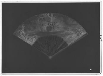 Keywords: Solfjäder, 1700-tal - Livrustkammaren - 60836-negative.tif Stomme av pärlemor 18 tunna blad med genombruten rokokodekor putti m m delvis täckt av tunna guld- och silverbleck samt rödmålad Ytterbladen av förgyllt silver utvändigt täckt med röda glasflusstavar <br/><br/>Skärm av pergament målad dekor i gouche På ena sidan sällskap i engelsk park Från vänster sittande dam och herre till höger i bakgrunden man och kvinna i parkvagn tvåspann lurblåsande lakej stående baktill bakom vagnen ryttare Mitt på skärmen två sittande kvinnor en stående kvinna med parasoll samt två män uppspänt soltak Till höger ryttarinna i bakgrunden staffagefigurer samt borg <br/><br/>På skärmens andra sida man och två kvinnor som sitter under träd mannen bekransar den ena kvinnan till vänster därom en flicka med blomsterkorg samt en pojke stående på stege som hänger upp en blomstergirlang i trädet i bakgrunden stuga med tvåhjulig vagn utanför original caption century 18 mother-of-pearl - silver - parchment size mm 245 size mm 330 g 85 size mm 115 skärm LRK place of origin original filename LN_B06247_009127 39251 inventory number LRK 2733 60836 CC0 Solfjäder 1700-tal - Livrustkammaren - 60836 tif <gallery caption Different images of same object > File Solfjäder 1700-tal - Livrustkammaren - 35156 tif </gallery> |
