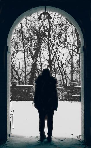 Keywords: columbus stock solitude lonely snow empty dark white light contrast trees Photograph of a woman looking out into the snow Photograph of a woman looking out into the snow