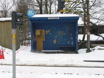 | Keywords: Sollerud station shack.jpg en Old-fashioned shack at Sollerud station on the southern side of the light rail track March 2009 nn Gamaldags leskur på Sollerud stasjon på sørsida av trikkelinja mars 2009 Own Punkmorten Sollerud tram station Shacks Sollerud |