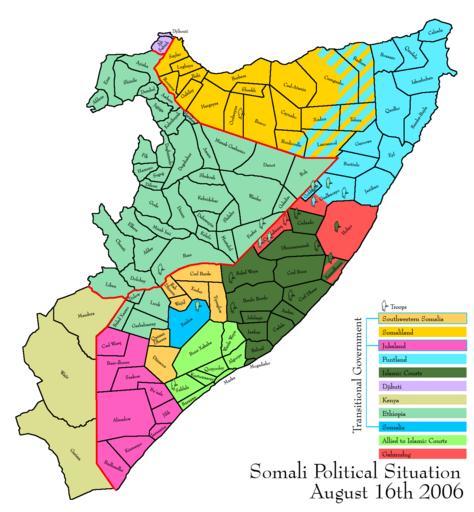 Keywords: Somali land 2006 08 16.png Somali political situation as of August 16 2006 2006-12-24 own assumed Ingoman Maps of Somali Civil War