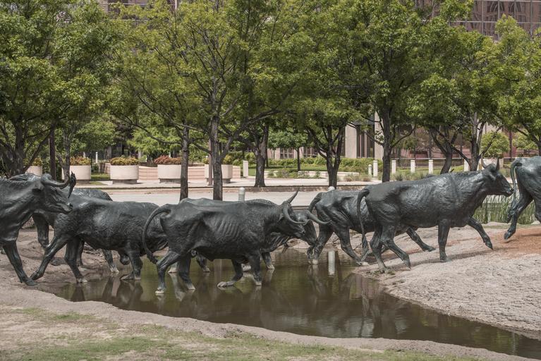 Keywords: Some of the 70 bronze steers in a large sculpture in Pioneer Park in Dallas, Texas, that commemorates nineteenth- century cattle drives that took place along the Shawnee Trail, the earliest and LCCN2014632596.tif 1 photograph digital tiff file color Notes Forms part of Lyda Hill Texas Collection of Photographs in Carol M Highsmith's America Project in the Carol M Highsmith Archive ; Sculptor Robert Summers Source A comprehensive guide to outdoor sculpture in Texas C Little 1996 ; Title date and keywords based on information provided by the photographer ; The trail passed through Austin Waco and Dallas until the Chisolm Trail siphoned off most of the traffic in 1867 The 70 steers and three trail riders were created by artist Robert Summers of Glen Rose Texas Each steer is larger-than-life at six feet high; altogether the sculpture is the largest bronze monument of its kind in the world Set along an artificial ridge and past a manmade limestone cliff native landscaping with a flowing stream and waterfall help create the dramatic effect ; Gift; The Lyda Hill Foundation; 2014; DLC/PP-2014 054 ; Credit line The Lyda Hill Texas Collection of Photographs in Carol M Highsmith's America Project Library of Congress Prints and Photographs Division 2014 Creator Carol M Highsmith Library of Congress Catalog http //lccn loc gov/2014632596 Image download https //cdn loc gov/master/pnp/highsm/28300/28396a tif Original url http //hdl loc gov/loc pnp/highsm 28396 No known restrictions on publication LOC-image highsm 28396 PD-Highsmith Images uploaded by Fæ Lyda Hill Texas Collection of Photographs in Carol M Highsmith's America Project in the Carol M Highsmith Archive The Lyda Hill Texas Collection of Photographs in Carol M Highsmith's America Project Library of Congress Prints and Photographs Division Photographs by Carol M Highsmith |