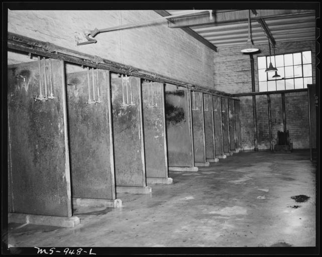 Keywords: Some of the showers in the bathouse for miners. Tennessee Coal, Iron & R.R. Company, Edgewater Mine, Birmingham... - NARA - 540621.jpg Scope and content General notes 540621 Local identifier 245-MS-948L Department of the Interior Solid Fuels Administration For War 04/19/1943 - 06/30/1947 NARA-Author Lee Russell 1903-1986 Photographer 2489414 <br /> Still Picture Records Section Special Media Archives Services Division NWCS-S National Archives at College Park 8601 Adelphi Road College Park MD 20740-6001 1946-07-26 Record group Record Group 245 Records of the Solid Fuels Administration for War 1937 - 1948 Record group ARC 572 Photographs of the Medical Survey of the Bituminous Coal Industry compiled 1946 - 1947 Series ARC 540230 File unit File unit ARC Variant control numbers NAIL Control Number NWDNS-245-MS-948L Other versions <gallery> File Some_of_the_showers_in_the_bathouse_for_miners _Tennessee_Coal _Iron_ _R R _Company _Edgewater_Mine _Birmingham _-_NARA_-_540621 tif tif File Some_of_the_showers_in_the_bathouse_for_miners _Tennessee_Coal _Iron_ _R R _Company _Edgewater_Mine _Birmingham _-_NARA_-_540621 jpg jpg </gallery> NARA-cooperation PD-USGov Mining buildings in the United States Coal Building interiors in Alabama Mining Coal mining in Appalachia x Economy of Alabama Coal Tennessee Coal Iron R R Company Mining Alabama in the 1940s Mining NARA images of Alabama Mining Black and white photographs of Alabama Mining Coal mining in the United States