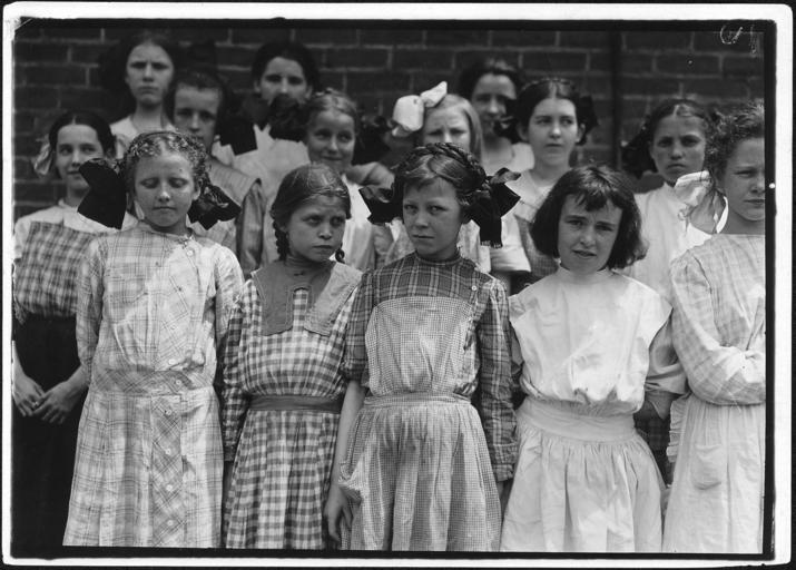 Keywords: nara:arcid=523435 u.s. national archives usnationalarchives lewis hine lewishine blackandwhite groupshot people monochrome photo border black and white Original Caption: Some of the young girls who roll cigarettes. I could not induce the very smallest ones to get into the photo. One boy said, Lots are working under 14. I went in under 12. Danville, Va, June 1911 U.S. National Archives’ Local Identifier: 102-LH-2198 Photographer: Hine, Lewis Subjects: Child Labor National Child Labor Committee Working Conditions Factory Persistent URL: research.archives.gov/description/523435 Repository: Still Picture Records Section, Special Media Archives Services Division (NWCS-S), National Archives at College Park, 8601 Adelphi Road, College Park, MD, 20740-6001. For information about ordering reproductions of photographs held by the Still Picture Unit, visit: www.archives.gov/research/order/still-pictures.html Reproductions may be ordered via an independent vendor. NARA maintains a list of vendors at www.archives.gov/research/order/vendors-photos-maps-dc.html Access Restrictions: Unrestricted Use Restrictions: Unrestricted Original Caption: Some of the young girls who roll cigarettes. I could not induce the very smallest ones to get into the photo. One boy said, Lots are working under 14. I went in under 12. Danville, Va, June 1911 U.S. National Archives’ Local Identifier: 102-LH-2198 Photographer: Hine, Lewis Subjects: Child Labor National Child Labor Committee Working Conditions Factory Persistent URL: research.archives.gov/description/523435 Repository: Still Picture Records Section, Special Media Archives Services Division (NWCS-S), National Archives at College Park, 8601 Adelphi Road, College Park, MD, 20740-6001. For information about ordering reproductions of photographs held by the Still Picture Unit, visit: www.archives.gov/research/order/still-pictures.html Reproductions may be ordered via an independent vendor. NARA maintains a list of vendors at www.archives.gov/research/order/vendors-photos-maps-dc.html Access Restrictions: Unrestricted Use Restrictions: Unrestricted