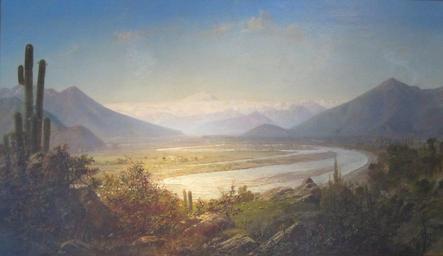 Keywords: Somerscales - Valle de Acancagua 1881.jpg Artwork 1881 oil on canvas 74 x 126 cm Museo Municipal de Bellas Artes Valparaíso object history credit line Con el título Valle del Aconcagua está colgado en el Museo de Bellas Artes de Valparaíso; y con el de Crepúsculo del Aconcagua figura en el álbum Thomas Somerscales Pintor de célebres marinas y serenos paisajes publicado en 2008 por Origo Ediciones en su colección Pintura Chilena del Siglo XIX accession number Rodrigo Fernández Foto cc-by-sa-3 0 PD-old-auto 1927 Uploaded with UploadWizard Museo Municipal de Bellas Artes de Valparaíso Thomas Somerscales |