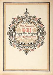 | Keywords: Song of the Merchant Kalashnikov (Bilibin) 1943 edition.jpg Ле монтов Ю Песня п о ца я Ивана Васильевича молодого оп ичника и удалого купца Калашникова / ис И Билибина Гослитиздат 1943 20 c ил 33 5 х 24 см http //www vnikitskom ru/antique/auction/82/35972/ century 20 Ivan Bilibin PD-old Song of the Merchant Kalashnikov Bilibin 00 Files uploaded by Shakko from various sources Book covers by Ivan Bilibin 1939 | ||||