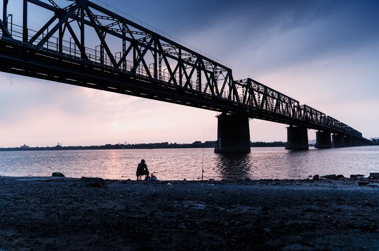 Keywords: songhua river riverside railway bridge sketch dusk fishing sunset silhouette evening