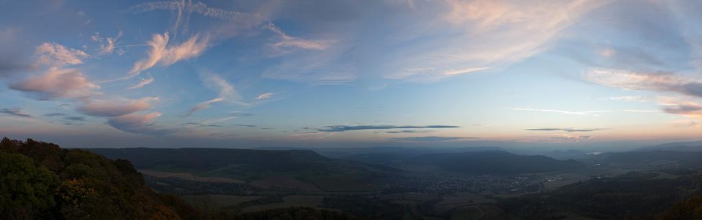 | Keywords: Sonnenuntergang über Wanfried Panorama.jpg Panoramablick vom Plesseturm bei Sonnenuntergang Im Tal zu sehen die nordhessische Kleinstadt Wanfried Direkt unter der Sonne zu sehen der große und kleine Leuchtberg rechts davon ein Teil des Werratalsees Panoramic view from Plesse tower during sunset The valley shows the city of Wanfried in northern Hesse Germany Right beneath the sun the great and small Leuchtberg on the right of them parts of the Werratalsee are visible own 04 10 2010 User Christoph Braun Canon EOS 5D Mark II manual different f/11 Exposure compensation 100 EF 16-35mm f/2 8L II USM Focal length 35mm Focal length 35mm 51 1905 10 196407 region DE LargeImage Retouched picture edited using Adobe Photoshop CS5 and its RAW converter levels adjusted overall sharpness increased content aware fill used to fill edges colour balancing noise reduction CA removed local contrasts increased Christoph Braun CC0 Plesseturm Panoramics of sunsets Sunsets of Hesse Files by Christoph Braun Unteres Werrabergland |